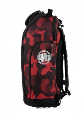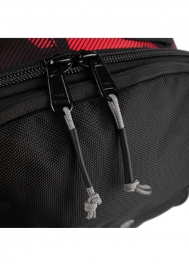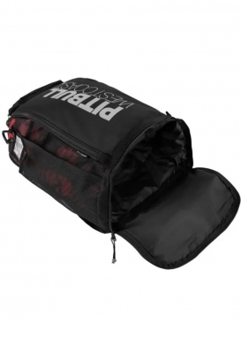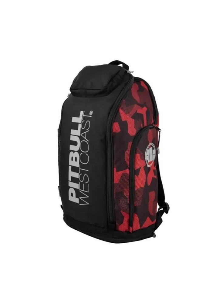 Plecak sportowy Airway marki Pit Bull w kolorze czerwono czarnym. Wykonany z grubej tkaniny na którą składa się 100% nylon. Produkt o pojemności 60L, wymiarach 22cm x 60cm x 40cm. Idealny na trening jak i do różnego rodzaju zastosowań turystycznych. Przestrzenna duża komora bez problemu pomieści odzież sportową a także większe przedmioty. Dodatkowa osobna komora na dole plecaka pozwala odizolować brudne i mokre rzeczy od reszty. Mała przednia kieszeń a także na lewym boku doskonale się sprawdzi przy mniejszych przedmiotach. Po prawej stronie znajduje się otwarta głęboka przegroda wykonana z siatki. Pitbull Airway posiada wiele zwiększających komfort i wygodę detali. Regulowane paski na ramiona z miękkim wykończeniem a także wygodne panele na plecy z dodatkową siatką typu mesh. Wszystkie zamki pochodzą od renomowanej firmy Ykk, posiadają zawieszki które ułatwiają zamykanie i otwieranie. Na froncie umiejscowiono duży odblaskowy nadruk Pit Bull West Coast, który zapewnia również większe bezpieczeństwo po zmroku.