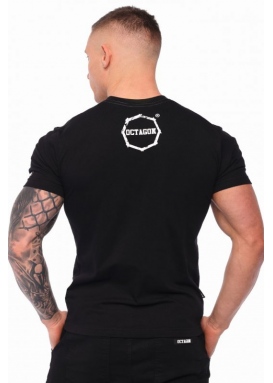 Koszulka z nowej serii marki Octagon. Bardzo wygodna i komfortowa w użytkowaniu. Wszyte gumowe elastomery oraz żakardowe metki podkreślają oryginalność i wyjątkowość modelu. Z przodu znajduje się duża grafika, która prezentuje postać znak rozpoznawczy producenta. Z tyłu wyeksponowano logo marki Octagon. Odzież Octagon to gwarancja jakości i zadowolenia.