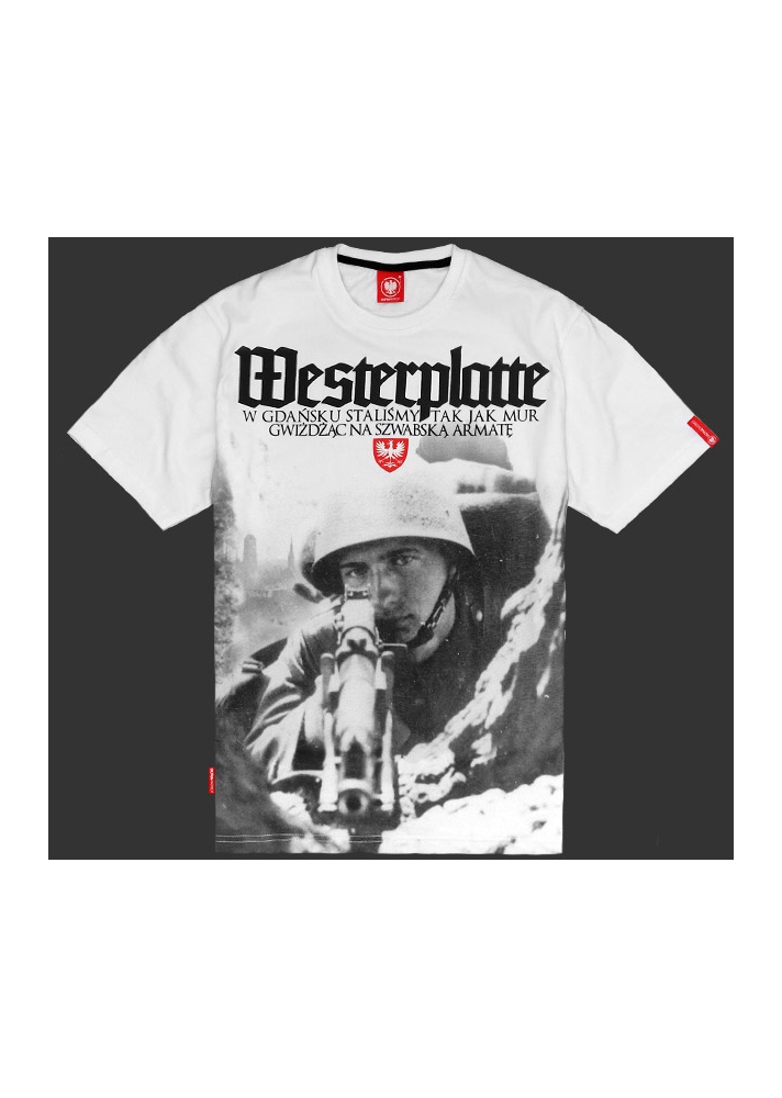 Parametry:nadruk wykonany metodą sitodruku,bawełna czesana 210g,ozdobne szwy,żakardowe metki,ozdobna lamówka. Tematyką koszulki patriotycznej jest obrona Wojskowej Składnicy Tranzytowej przez Wojsko Polskie na półwyspie Westerplatte w pierwszych dniach września w 1939 roku.Była to pierwsza bitwa II wojny Światowej w Europie.1 IX 1939r ostrzałem artyleryjskim pancernika Schleswig-Holstein rozpoczął się niemiecki atak na Polskę.Mimo znacznej przewagi wroga półwysep był bohatersko broniony do 7 IX.Obrona miała duże znaczenie moralne i zapisała się na stałe w historii Polski Prac w temp 30st